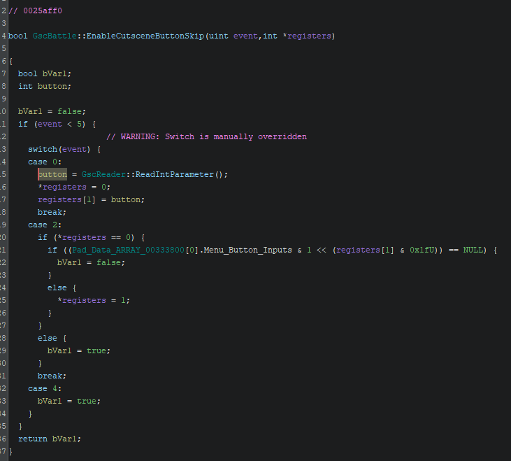 - Stops the flow of execution until a certain button is pressed. In other words, a poor attempt at a cutscene skip.